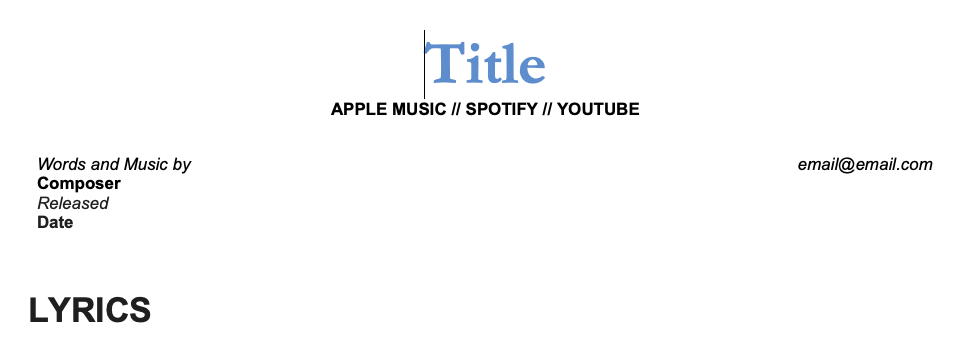 - Two (2) templates for lyrics only. A Microsoft Word template, and a parallel template that works in Google Docs.